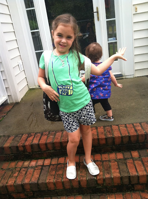 life-affirming first day of school photos!!! an unnamed child with long brown hair dropped and broke my camera a few months ago so unfortunately every crisp, clear, riveting* picture is from my iphone.) *sarcasm font has yet to be invented